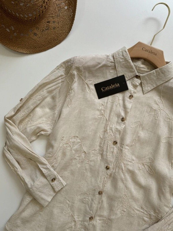 Descubre la elegancia de la Camisa Lauren de nuestra Colección Importados , una pieza imprescindible para Todos días. Confeccionada en lino de , ofrece una textura ligera y fresca. El diseño destaca por su bordado de hilos de algodón, formando un encantador patrón de flores que aporta un toque femenino y delicado. El cuello clásico proporciona un estilo atemporal, mientras que el cierre en delantero y puños con botones acrílicos símil madera añaden un detalle sofisticado. Una característica versátil de esta camisa son los tirantes y botones para regular el largo de las mangas, permitiéndote adaptarla a tu gusto y necesidad. Además, cuenta con un recorte en la espalda que ofrece un ajuste favorecedor y moderno. Talle L: Sisa 62cm; Espalda 57cm; Largo 72cm