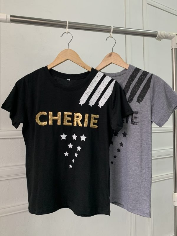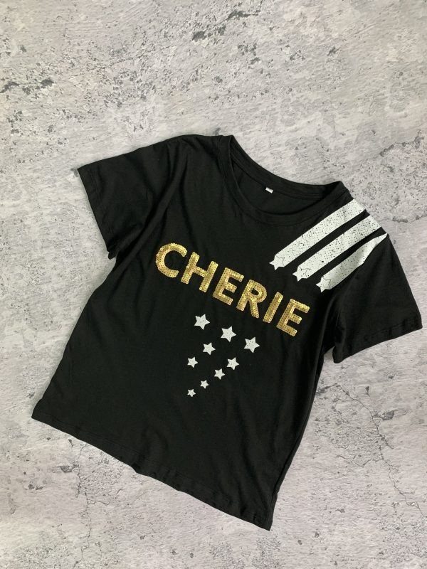 REMERA ESTAMPADA Y BORDADA EN LENTEJUELAS, DE ALGODON JERSEY, DISPONIBLE EN TALLE 6