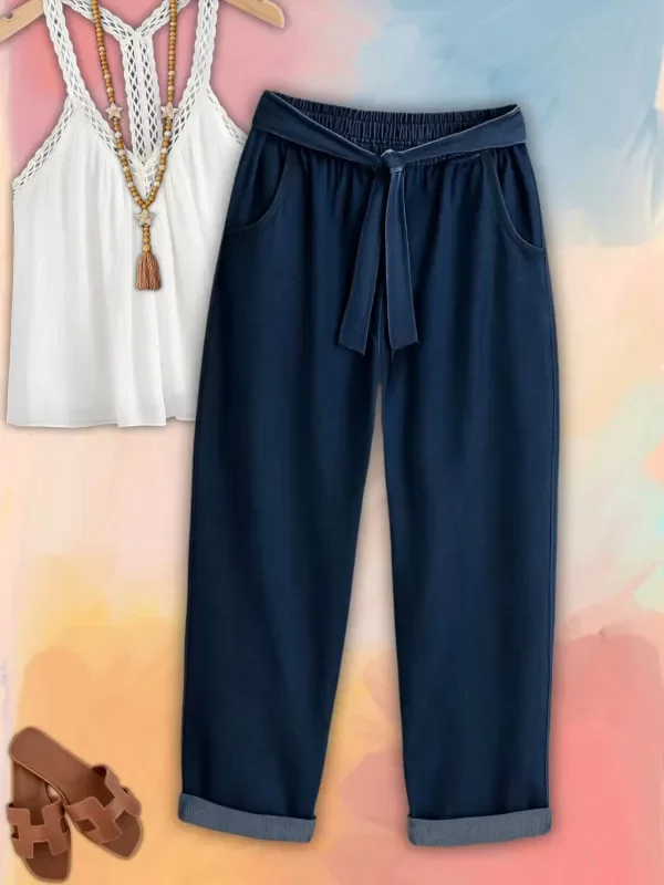 El pantalón está fabricado en bengalina símil jeans elastizada de excelente calidad. Posee bolsillos a los costados y cinto para regular. Vienen en talle Unico y cede hasta un XL