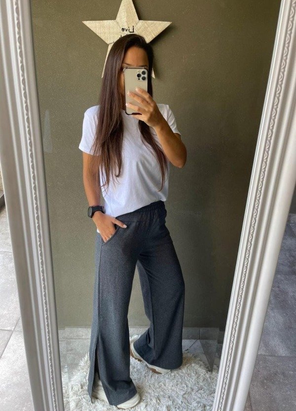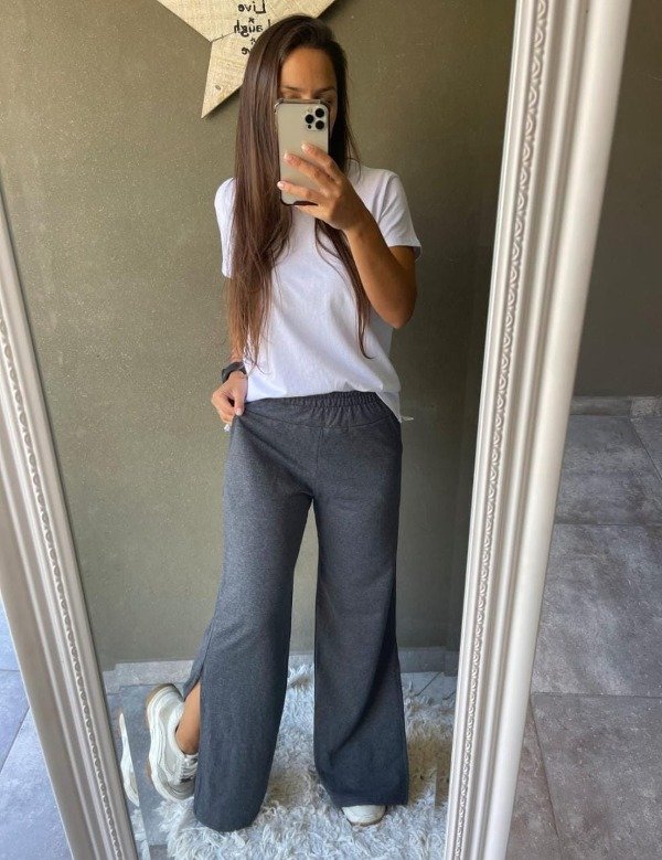 Confeccionado en algodón rústico con elástico en zona de cintura, bolsillos laterales y detalles de tajos al costado.