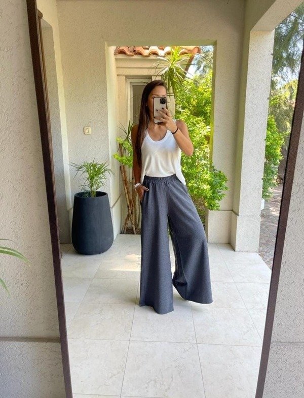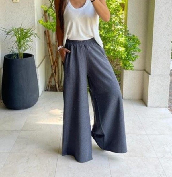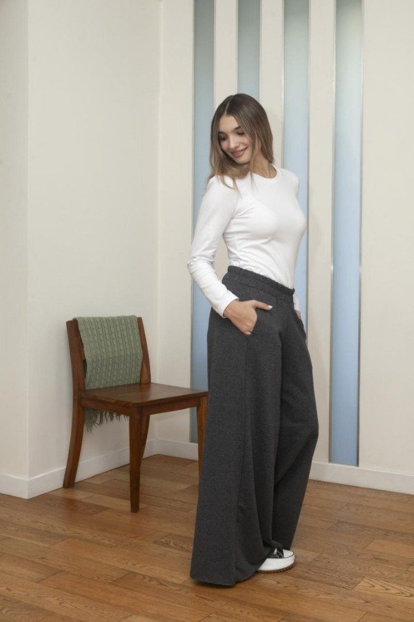 Palazo tipo Oxford, confeccionado en tela de algodón rústico, con bolsillos laterales. Y cintura elastizada.