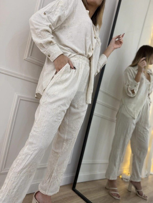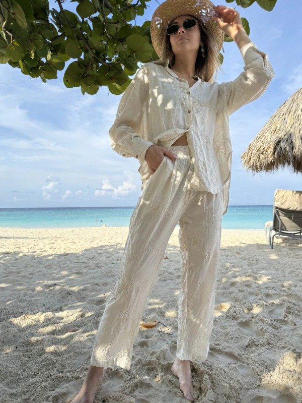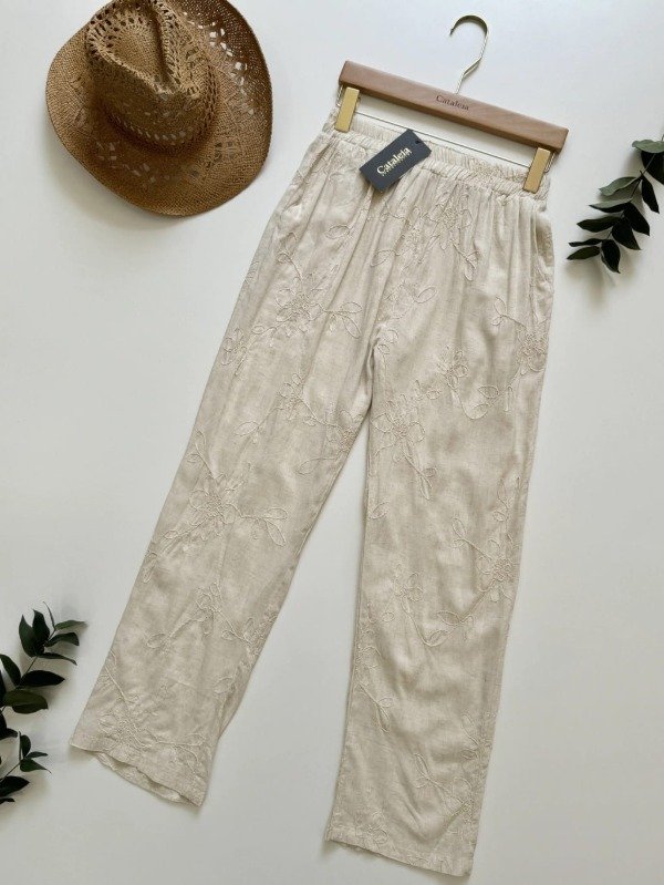 Presentamos el Pantalón Lauren de nuestra Colección Importados , una prenda que fusiona elegancia y comodidad para cualquier ocasión. Está confeccionado en lino de verano y cuenta con un bordado de hilos de algodón que forma un delicado diseño de flores, asegurando un estilo único. Su diseño incluye prácticos bolsillos en el delantero, ideales para llevar lo esencial con estilo. La cintura con elástico proporciona un ajuste perfecto y cómodo, permitiendo una gran libertad de movimiento. Talle L: Cintura en reposo 33cm; Cintura extendida 52cm; Cadera 62cm; Largo 100cm.