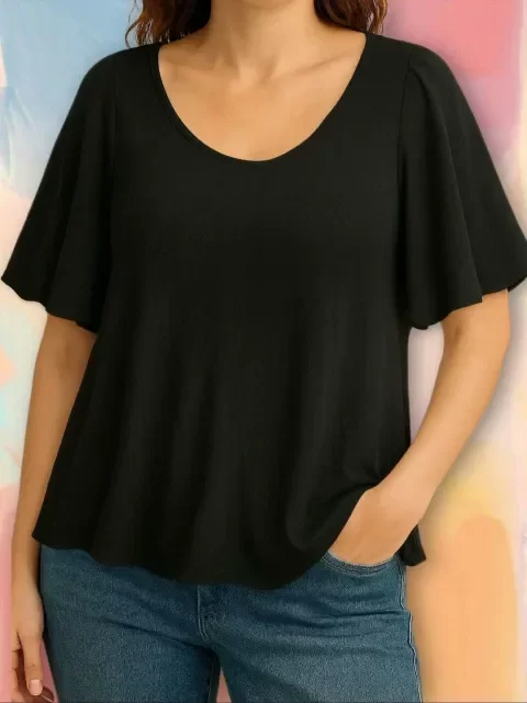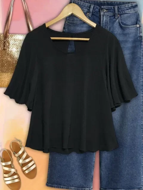 La blusa esta fabricado en tela cey spandex. Es talle Unico y cede hasta un Xl.
