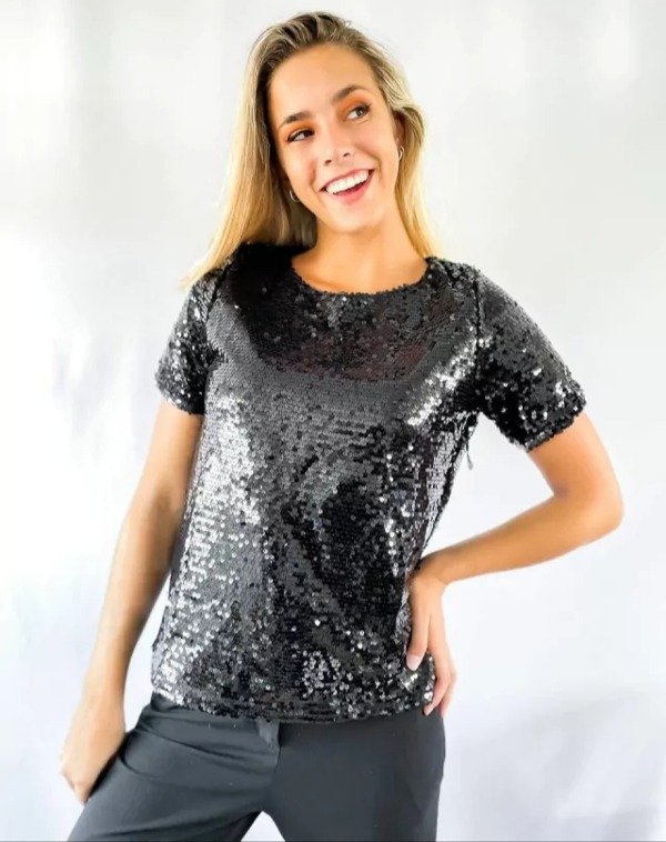 Remera confeccionada en paillete, llena de lentejuelas en color negro 😍