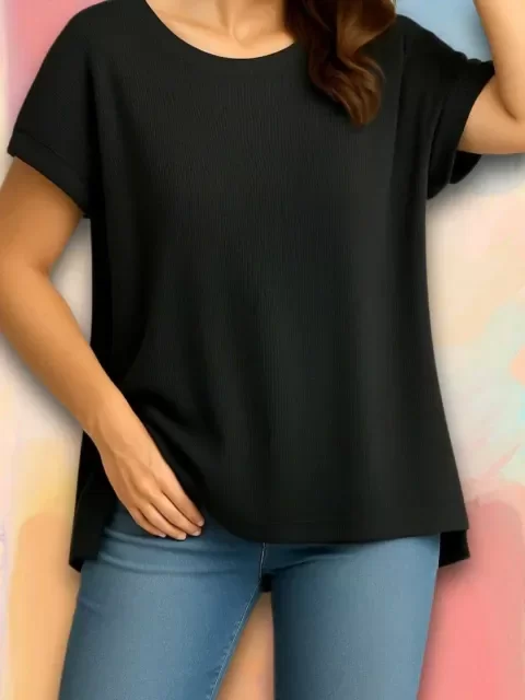 El remeron esta fabricado en tela morley. Es talle Unico y abarca hasta un Xl.