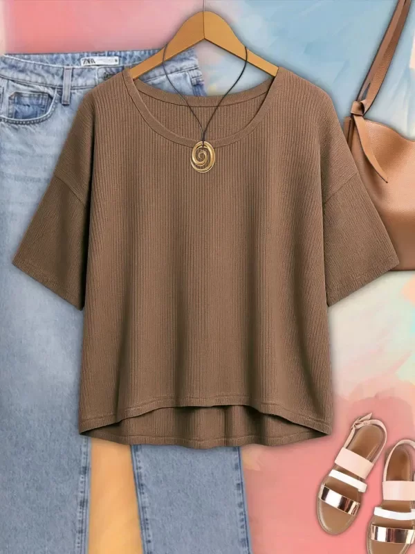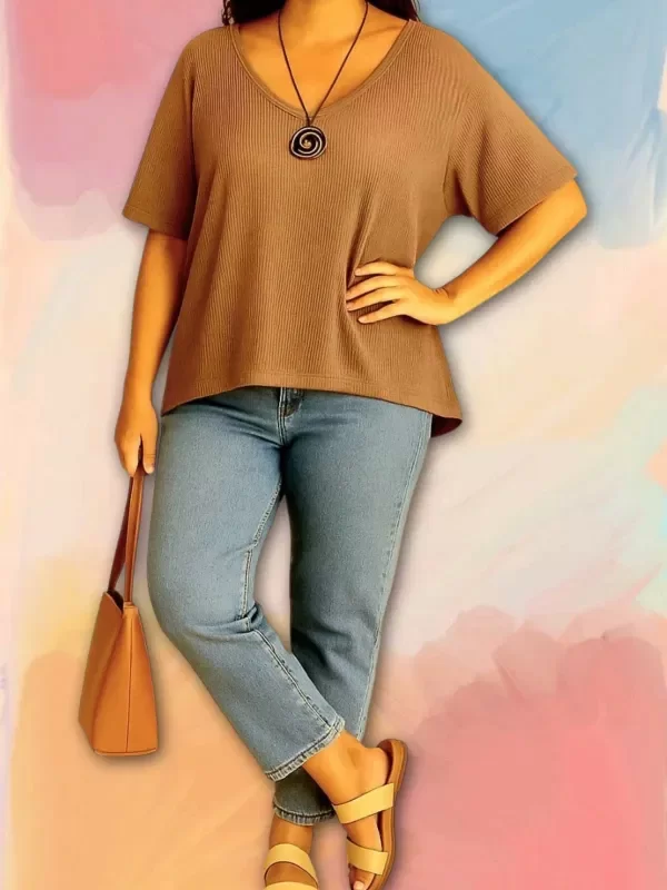 La remera esta fabricada en tela micro morley. Es talle Unico, el modelo es suelto y la tela es elastizada, cede hasta un XL.
