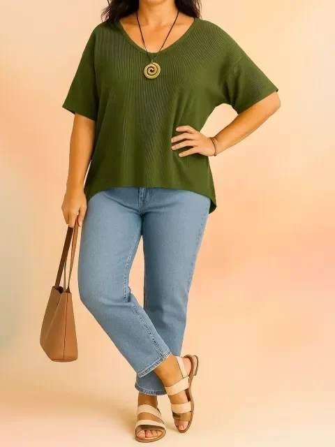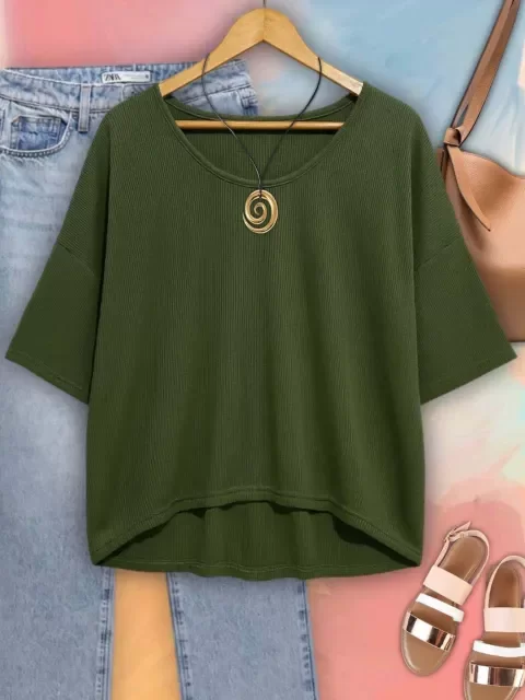 La remera esta fabricada en tela micro morley. Es talle Unico, el modelo es suelto y la tela es elastizada, cede hasta un XL.