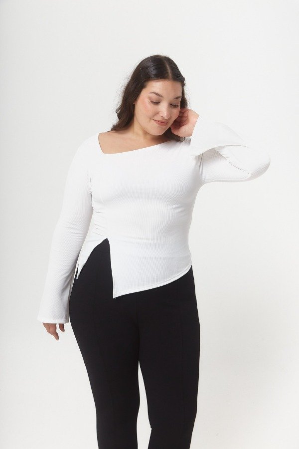 CAMISETA MANGAS OXFORD Descubrí esta hermosa camiseta con detalles únicos: cuello asimétrico, mangas Oxford y una apertura en pico al costado que le aporta un toque canchero y moderno.